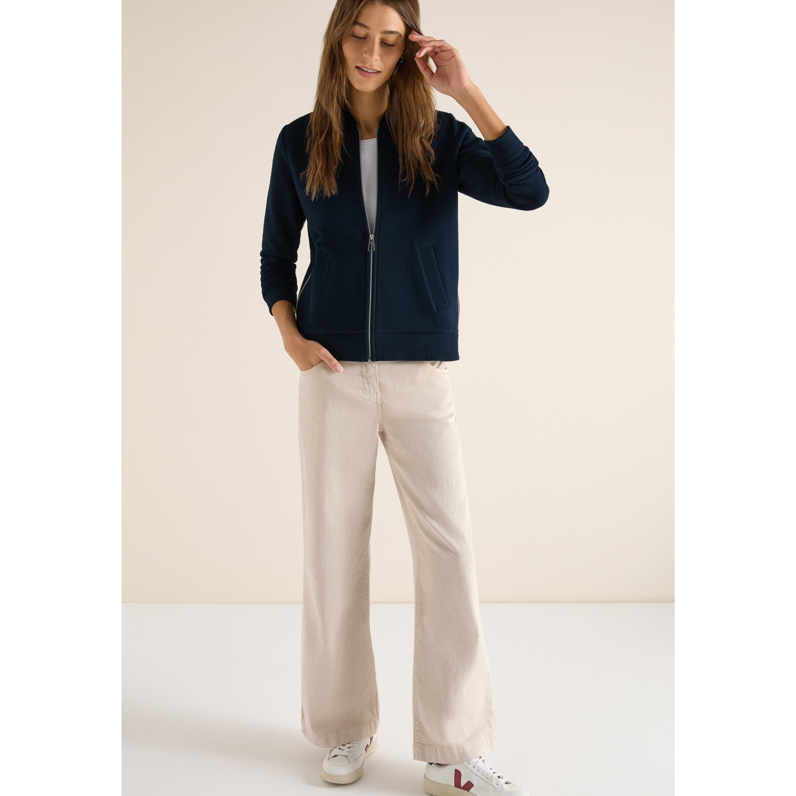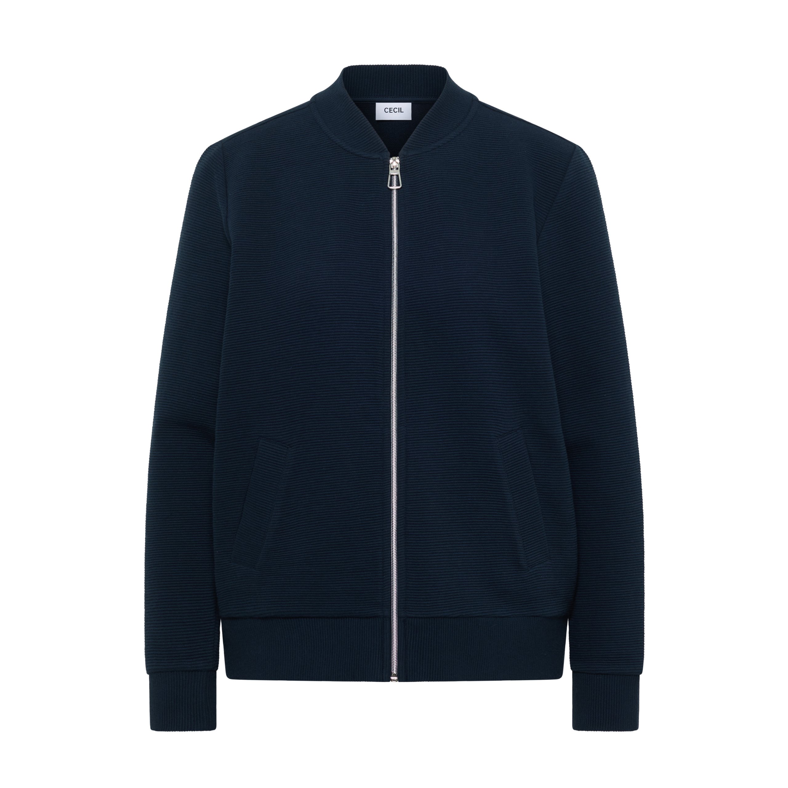 This ottoman jacket by CECILĀ combines a sporty look with a fine structure for a modern appearance. The cotton blend with stretch content ensures pleasant wearing comfort and a comfortable fit. With a round neckline, side pockets and a plain-coloured look, the jacket can be integrated into your everyday look in a variety of ways.