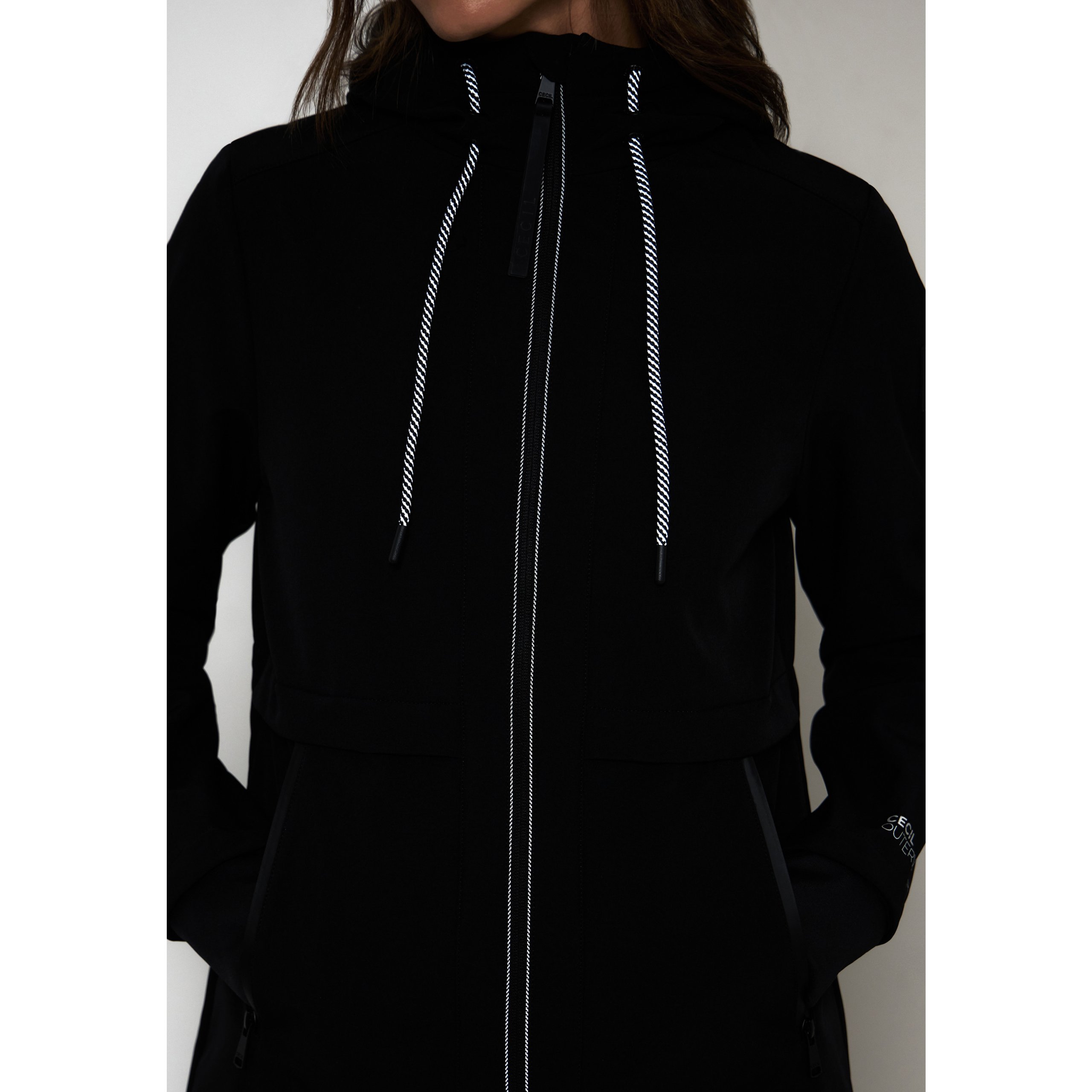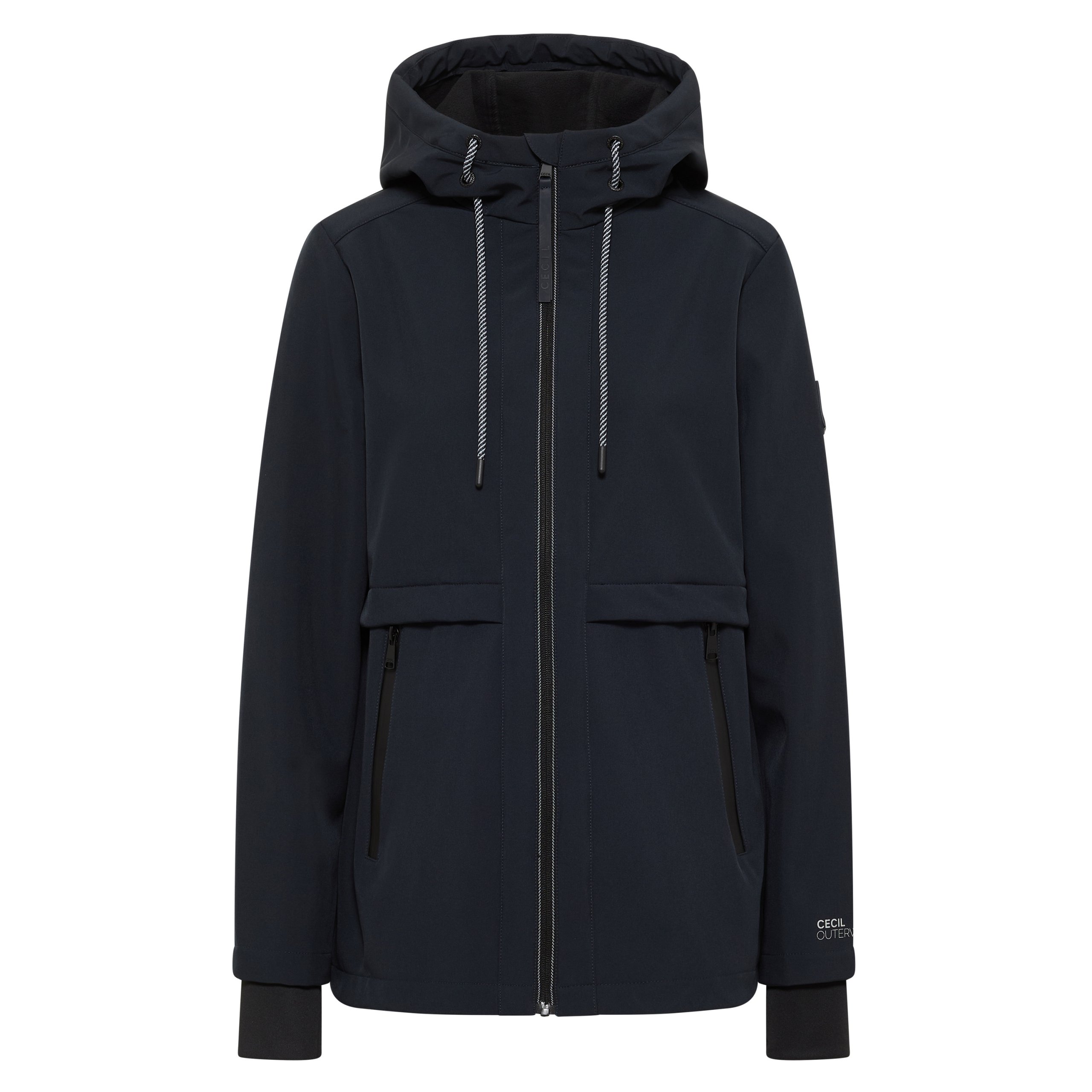 The water-repellent softshell jacket in midi length by CECIL scores with functional details and a sporty look. Softly lined with fleece on the inside, reflective elements and thumbhole cuffs on the outside – perfect for active days. The waist and hem can be individually adjusted, so you can feel completely comfortable.