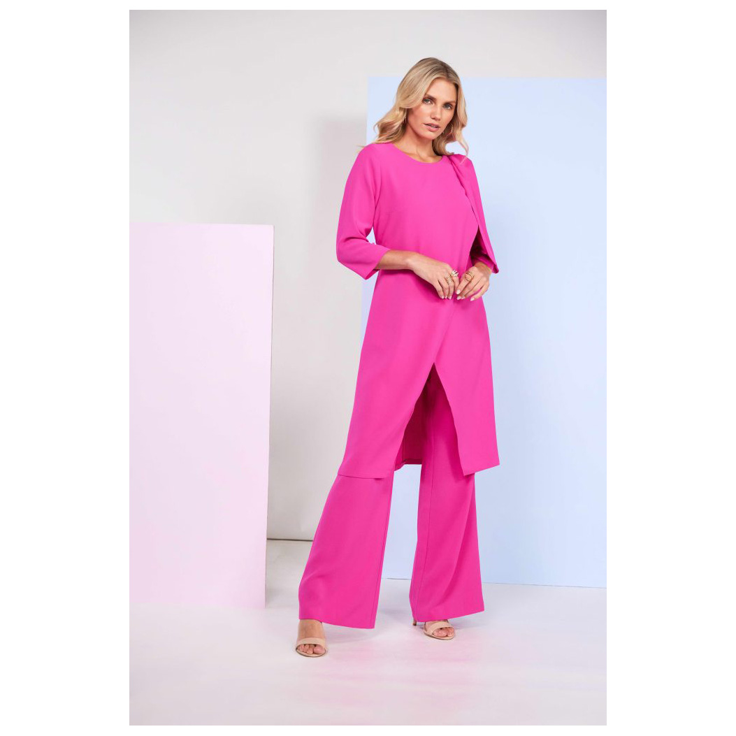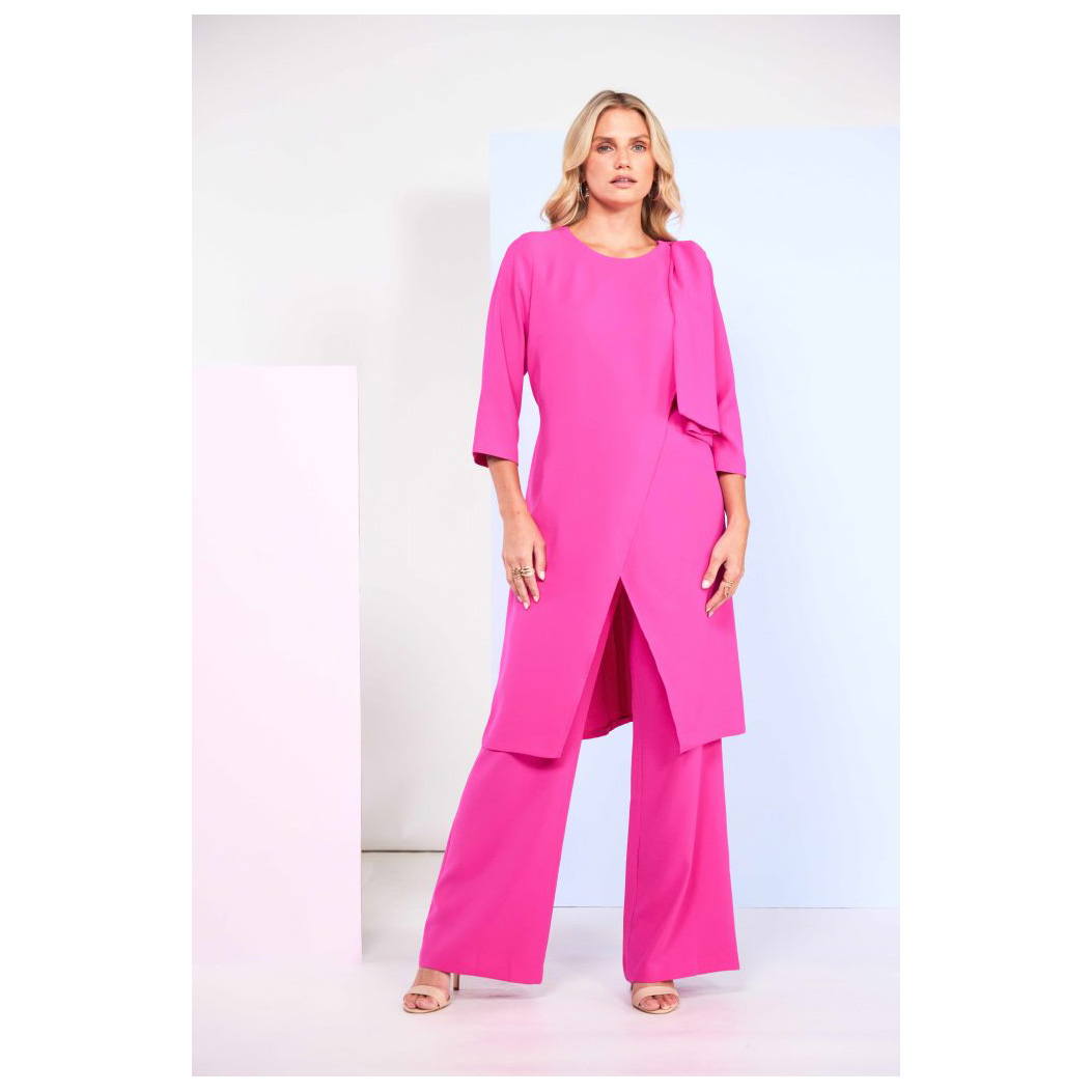 Kate Cooper round neck tunic top with shoulder bow detail and matching boot cut trouser. This version is crisp and sharp in colour. Detailing remains simple including the self coloured button to the waistband