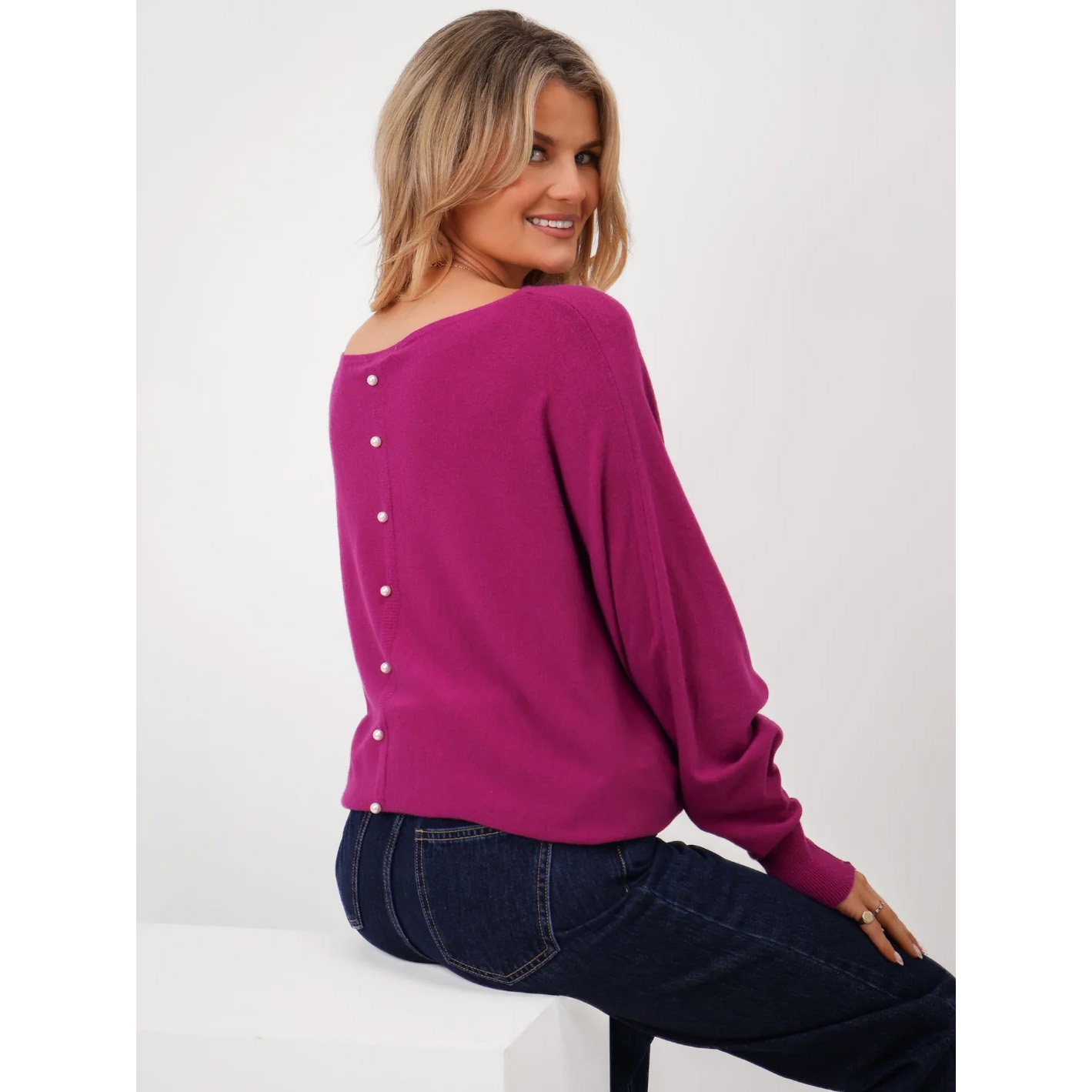 Luxuriously soft with a cashmere feel, the Elba Knit is your perfect blend of comfort and elegance. This batwing-style knit drapes beautifully for a flattering, relaxed silhouette, while the delicate pearl button detail down the back adds a touch of understated glamour. Effortlessly versatile, it’s ideal for pairing with jeans for a chic daytime look or dressing up for an evening out.