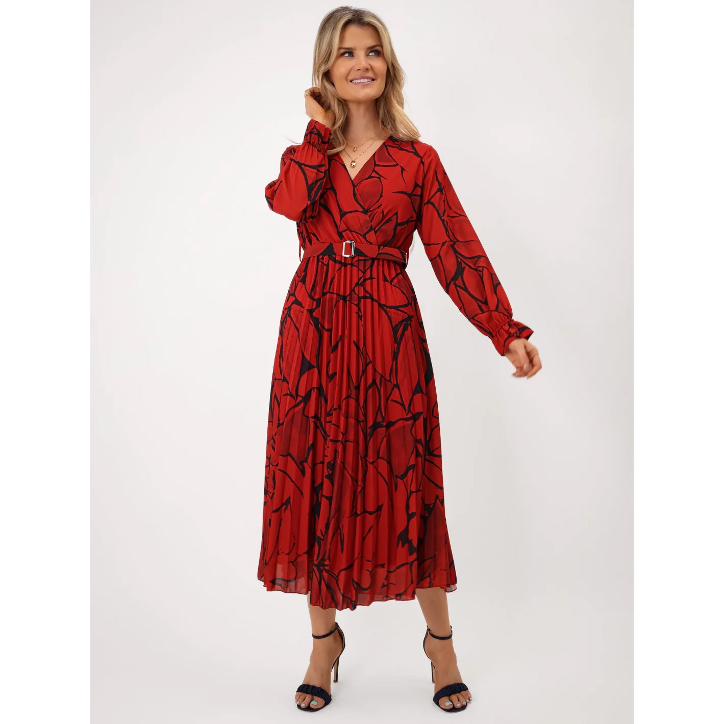 Feminine, flattering, and effortlessly stylish, the Positano Belted Pleated Midi Dress is designed for any occasion. Featuring a soft V-neckline, long sleeves with elasticated cuffs, and a belted waist to define your silhouette, it flows into a beautifully pleated midi skirt for graceful movement. Perfect with heels for an elevated look or dressed down with boots for everyday elegance.