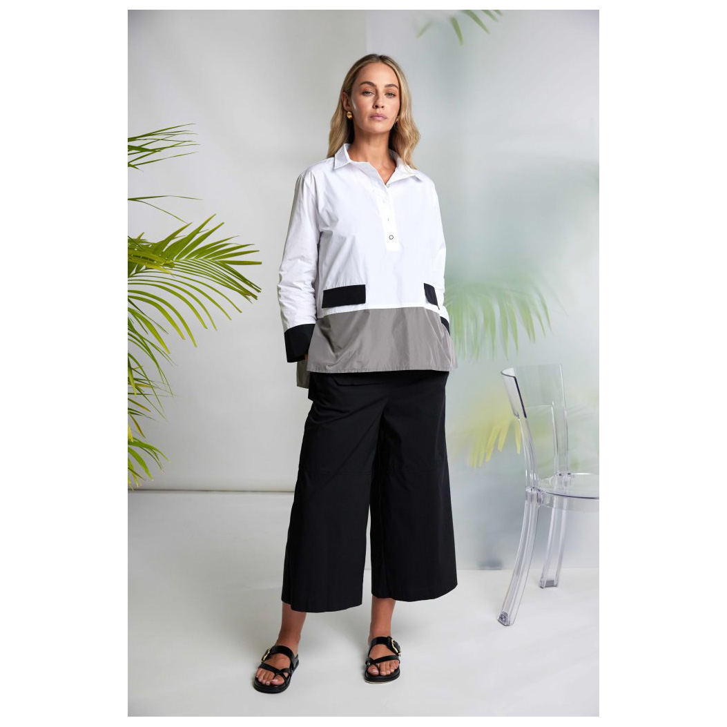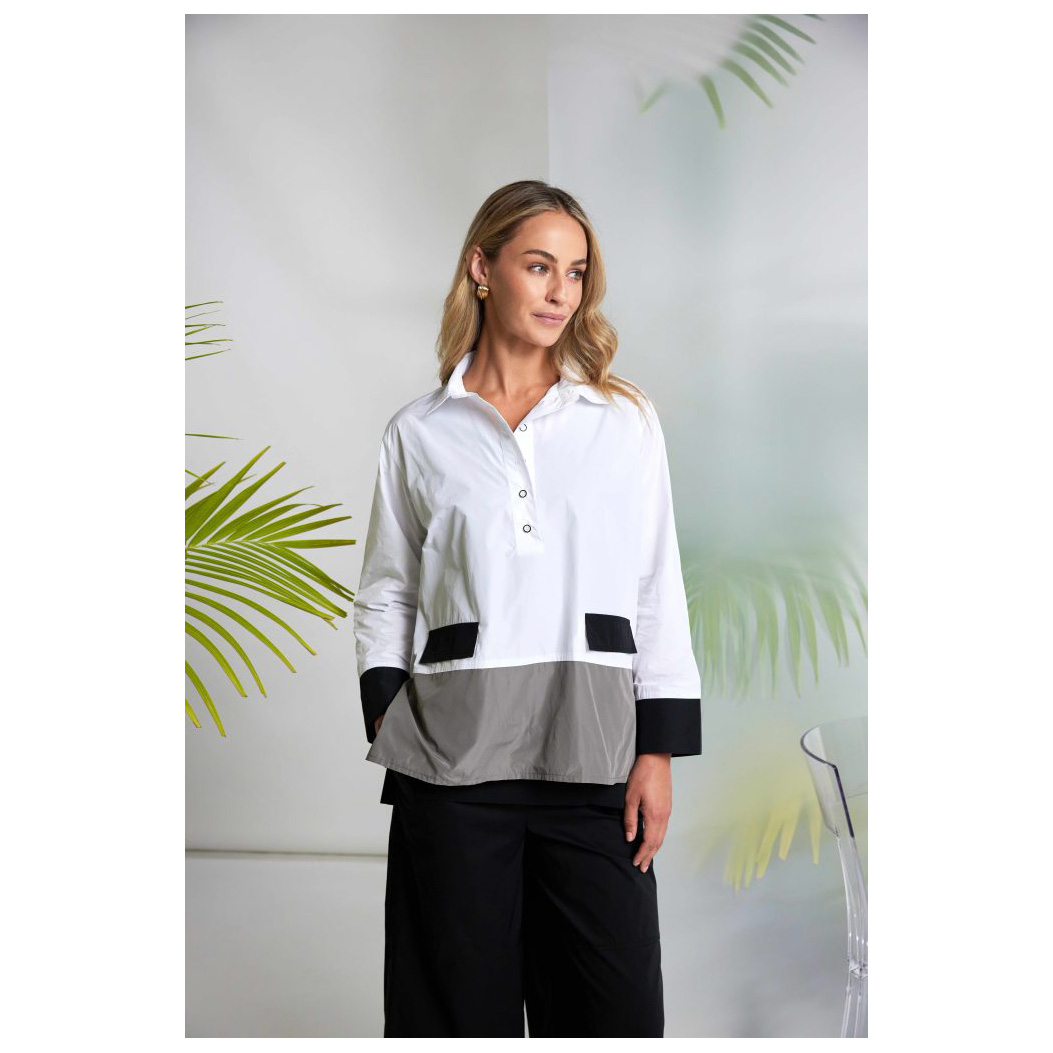 NAYA masters at colour blocking take a casual long sleeved top and give it the NAYA trend treatment. Adding a shirt collar, detailed buttons, and block colours to the cuffs, hemline, and pocket flaps. This design will add a signature style to your outfit of the day.