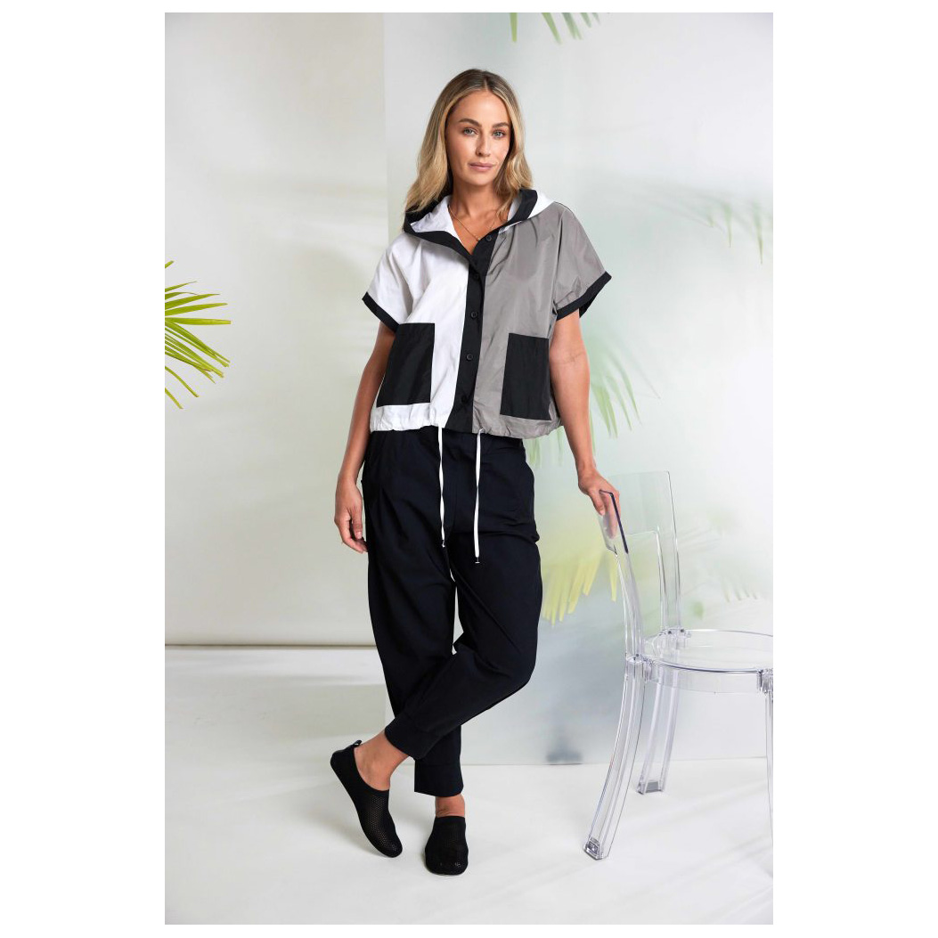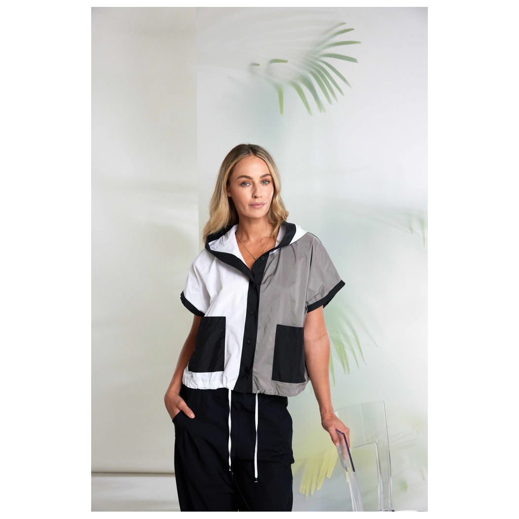 NAYA introduce a casual jacket with lots of personality. This piece features a hood and drawstring hem with the stand out characteristic being the clever colour combination. In sharp neutral colours the pockets and panels are placed beautifully to flatter.