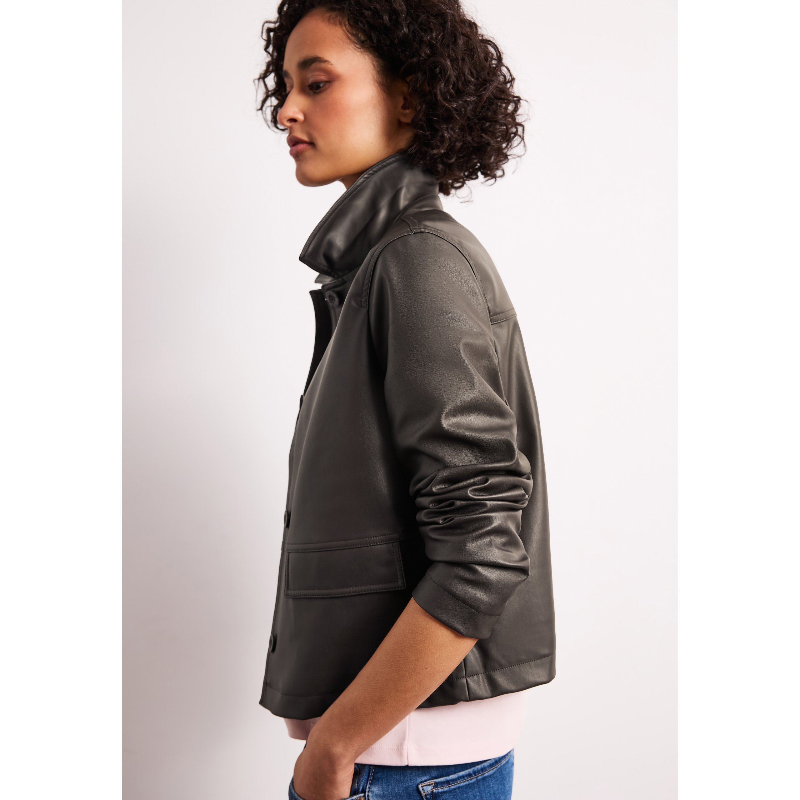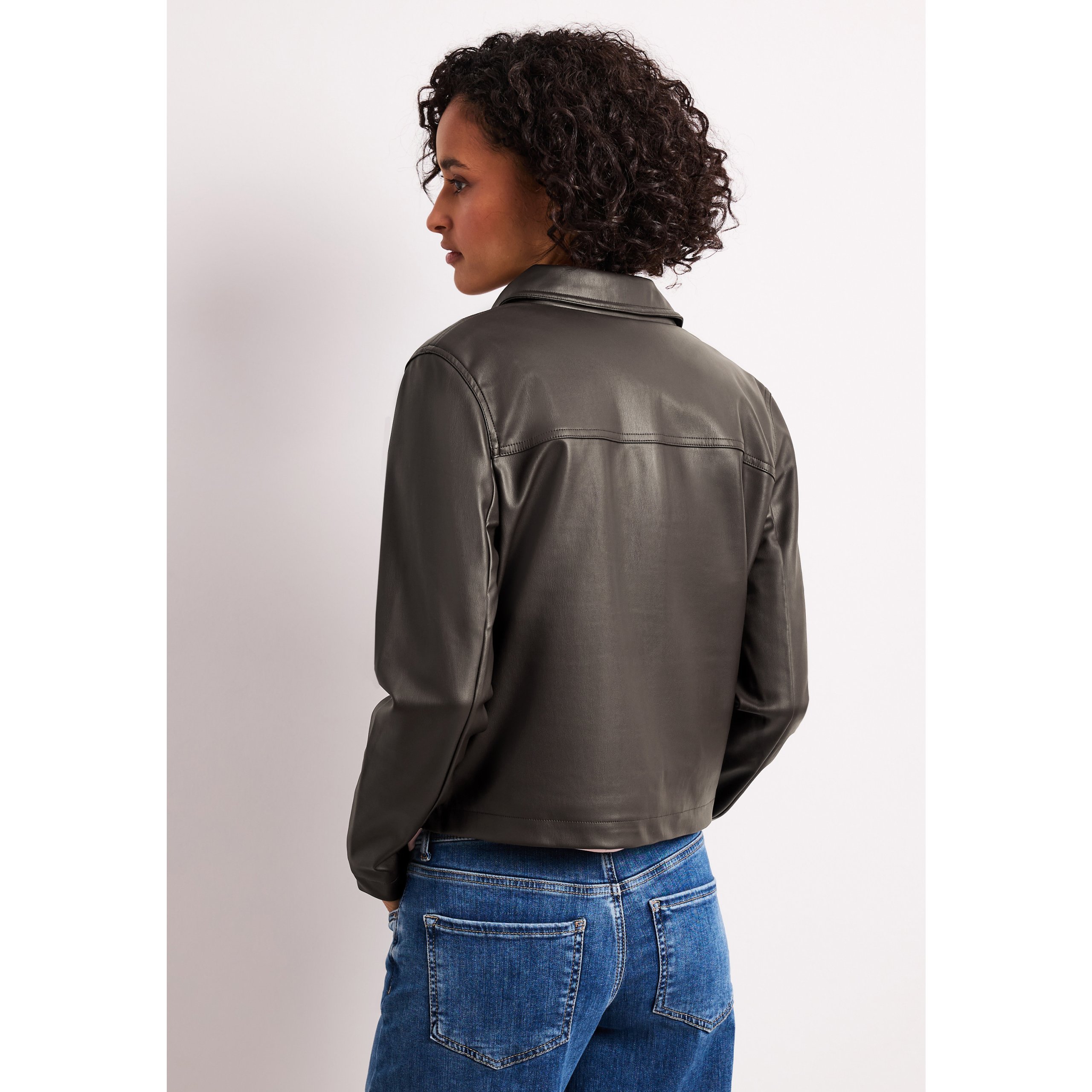 Street One leather-look finish jacket with a classic shirt collar and button placket.