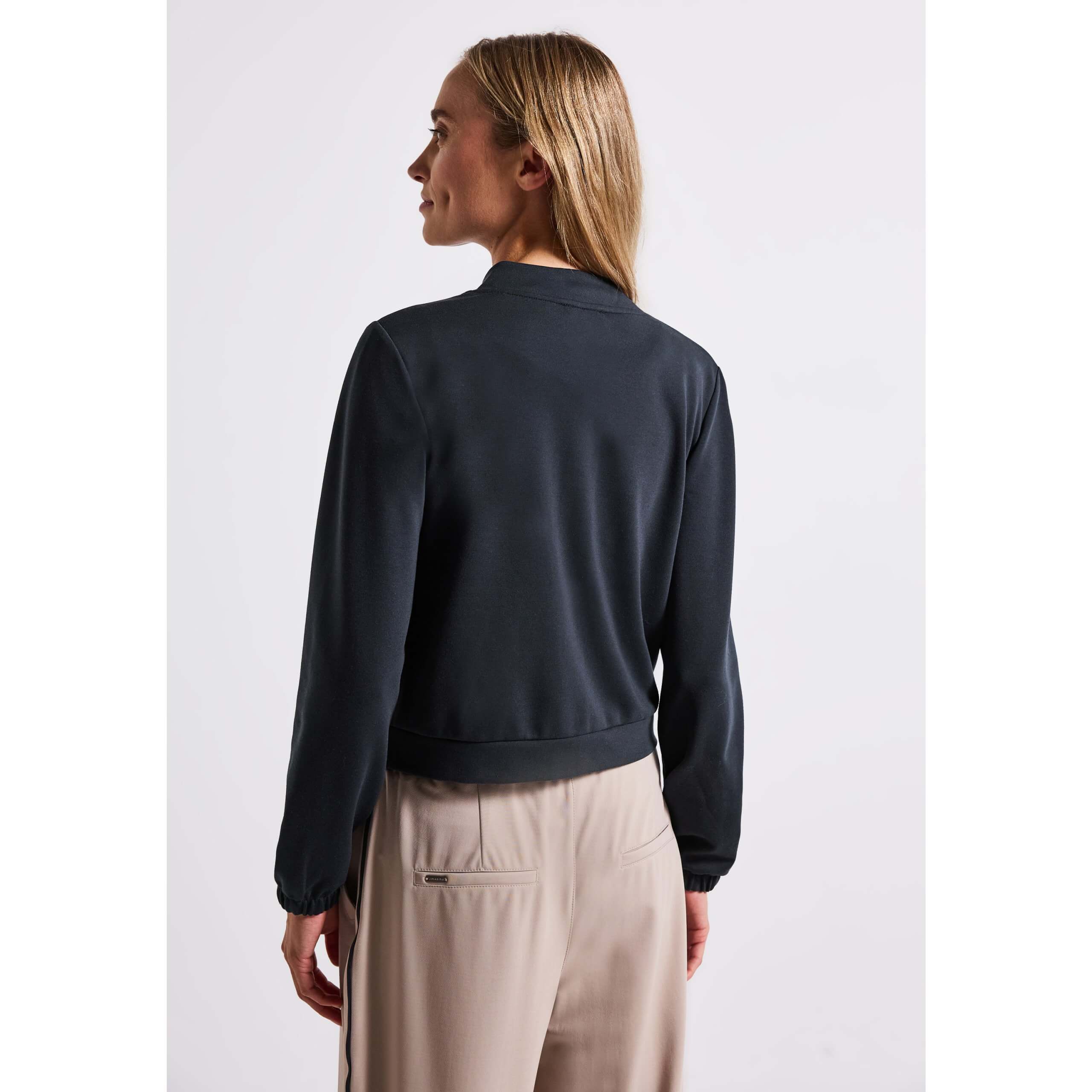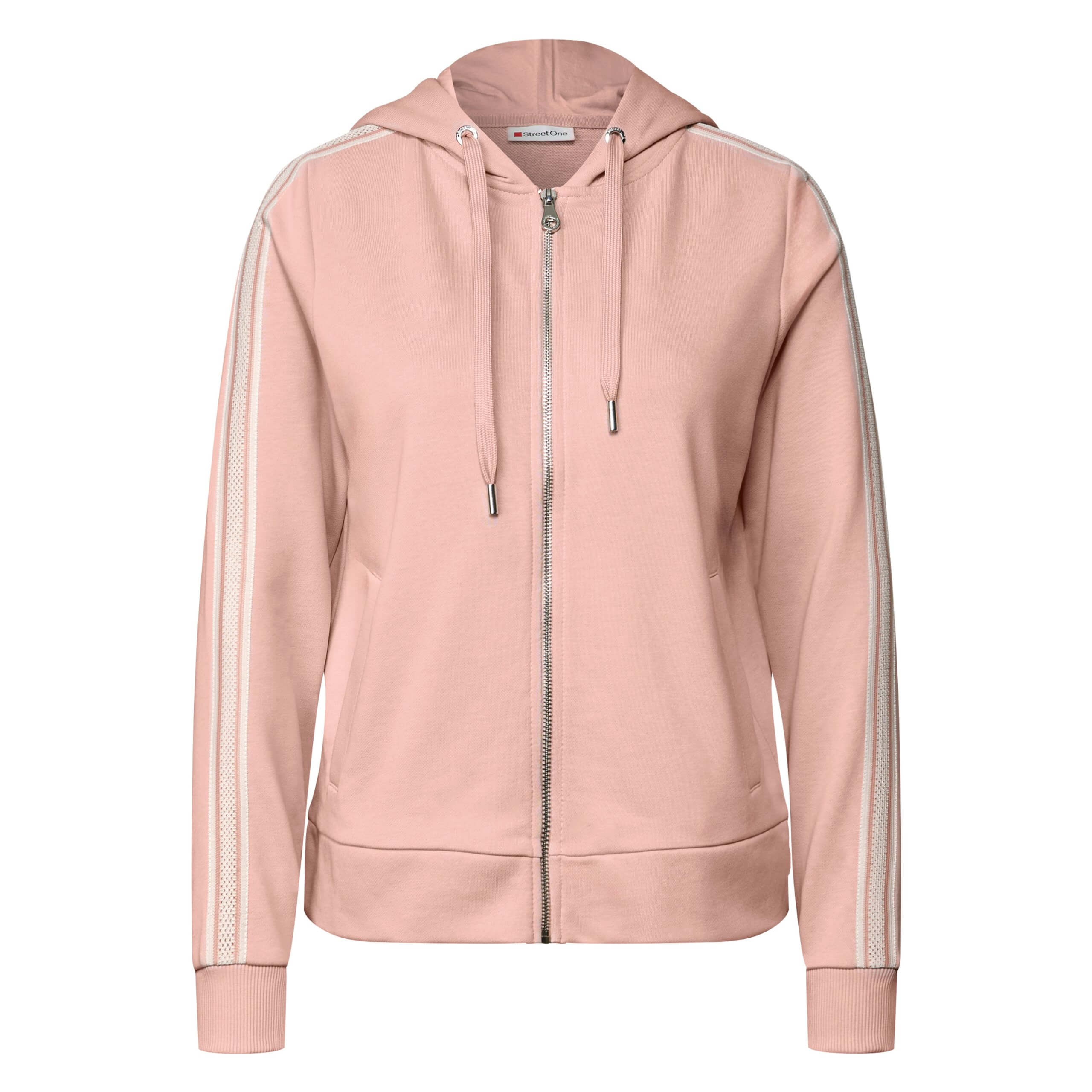 The hooded jacket by Street One combines sporty elements with fashionable flair. Galon stripes on the sleeves and decorative tape add stylish accents, while ribbed cuffs, side pockets and the drawstring hood provide comfort. The soft Terry Sweat quality makes the sweat jacket with zipper the perfect all-rounder for relaxed looks.