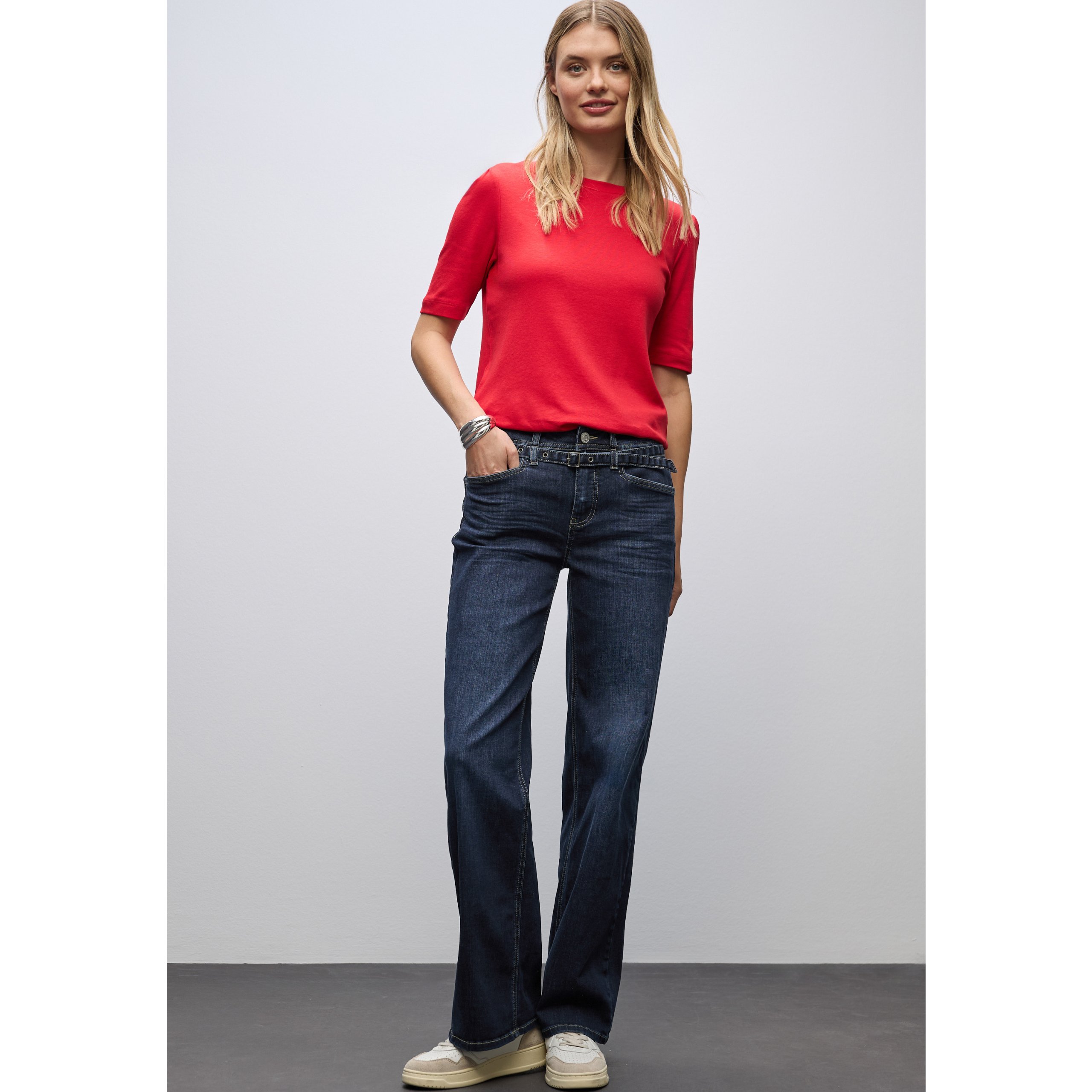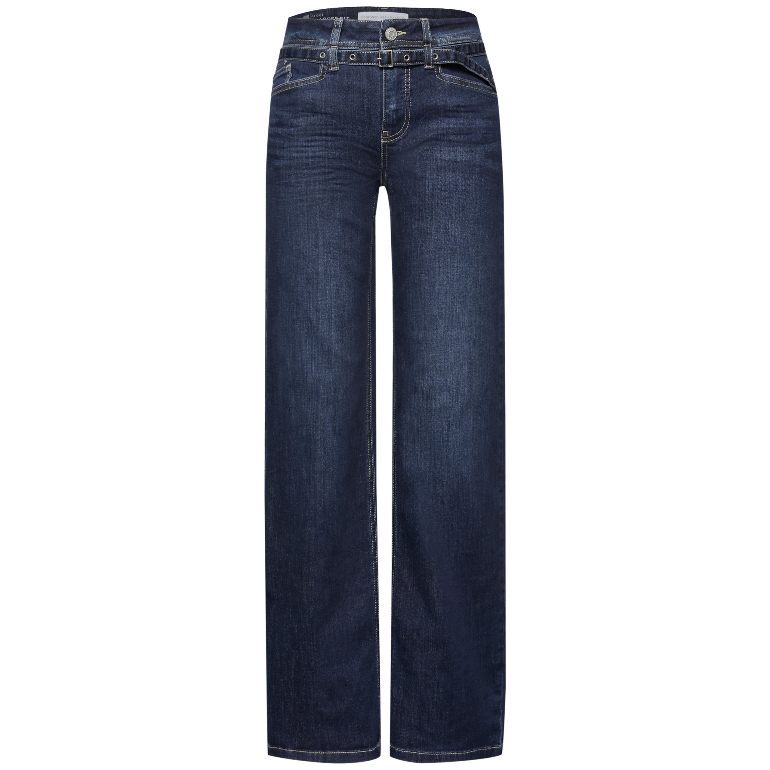 These wide leg jeans from Street One bring extra style to your outfit with the belt at the waist. The loose fit with high waist and wide leg creates a trendy look, while the dark denim can be combined in many ways. Thanks to the stretch content, the trousers fit comfortably – a fashionable must-have for modern casual styles.